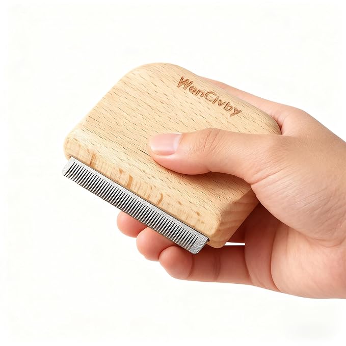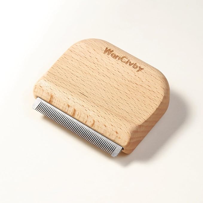 - 【Ergonomic Design】Double-sided curved ergonomic handles, provide a effortless and comfortable grip, made with a smooth wood surface painted. Perfectly fits human and pet hands/body. Stainless steel bristles are very durable and easy to clean.