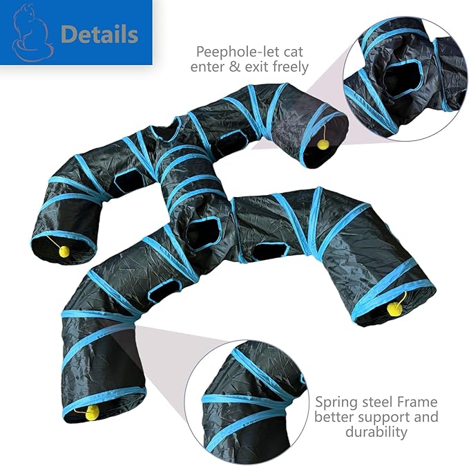 - MULTI-EXIT DESIGN FOR ENDLESS FUN: This H-shaped cat tunnel features 4 exits and interactive playing balls, encouraging cats, kittens, rabbits, and puppies to run, hide, and explore. Perfect for stimulating their natural instincts and keeping them active!