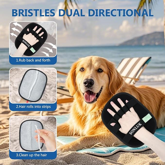 - 2PCS Pet Hair Remover SIZE:Featuring a breathable five-finger design and an elastic wrist strap, these gloves are crafted from safe, skin-friendly materials to ensure a secure, non-slip grip and all-day comfort. The expanded palm area (9.05"x7.09") ensures high efficiency, making cleaning large surfaces like carpets quick and simple
