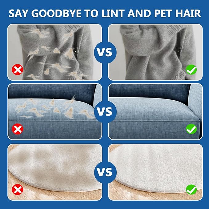 - Effortless Cleaning with Static Electricity Technology:Harnessing electrostatic power, these pet hair removers effortlessly lift lint, pet hair, and dust with gentle left-to-right strokes. No more tedious rolling or struggling with stubborn debris
