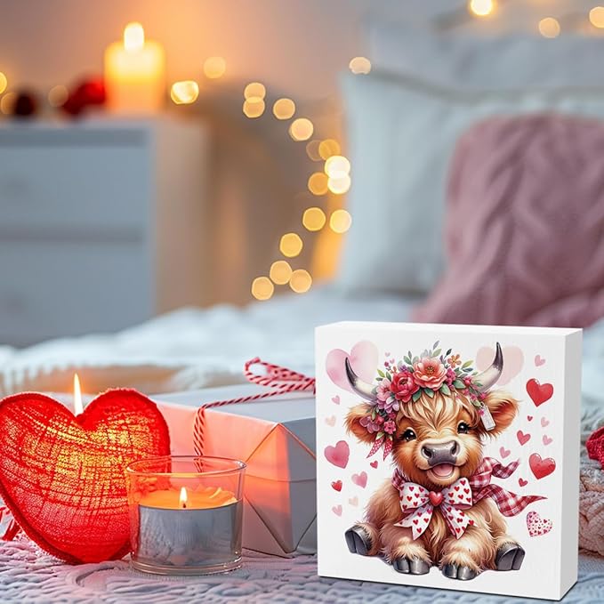 Valentine Decorations for Home Highland Cow Valentine Decor Valentines Day Decorations for Table Valentine's Day Decor Gifts for Boyfriend Girlfriend 5 X 5 Inches
