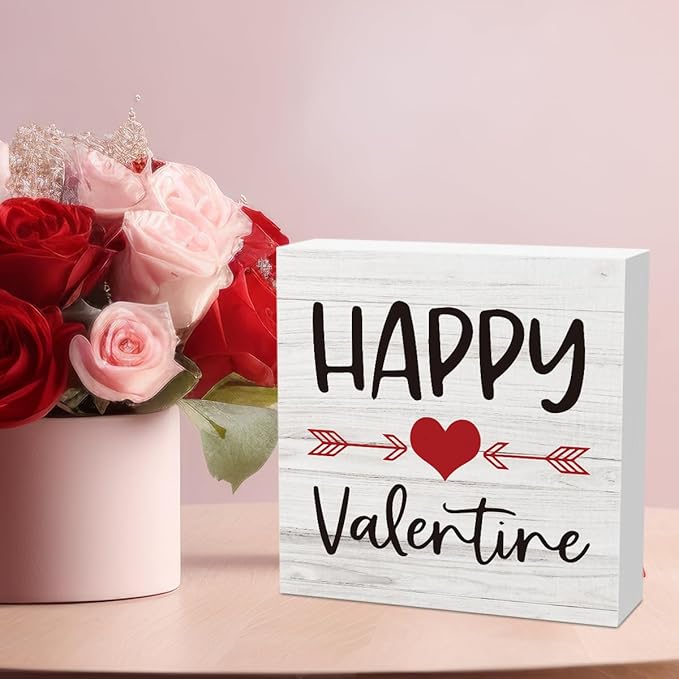 Happy Valentines Decoration for Home Valentine Decor for Kitchen Table Rustic Valentine'S Day Decor Gifts Boyfriend Girlfriend 5 X 5 Inches