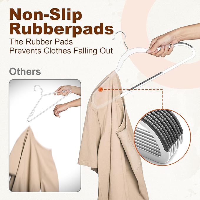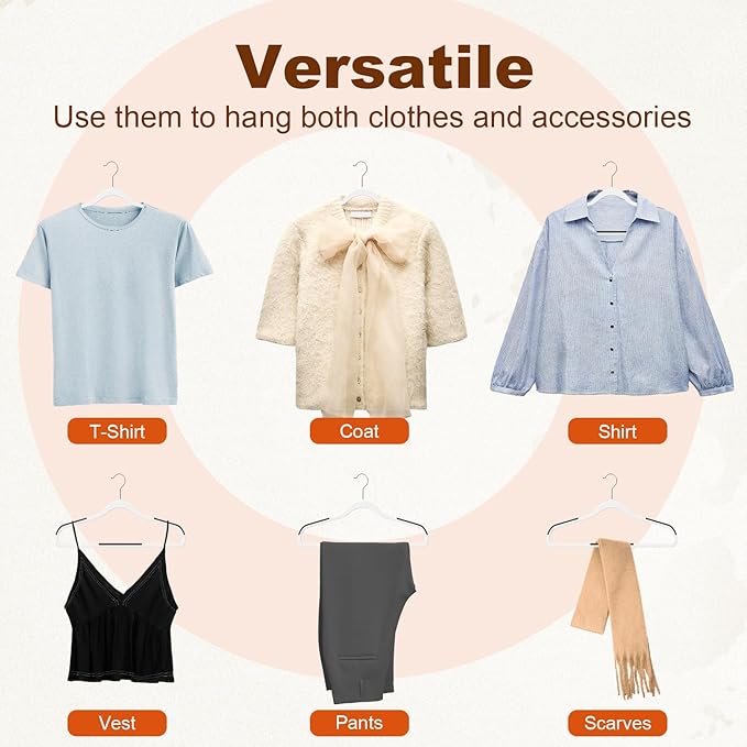 - Slim & Space Saving: With each hanger measuring just 0.2 inches thick, these hangers are designed to maximize closet space, allowing you to fit more clothes neatly and efficiently. This slim profile is perfect for tight spaces, helping you optimize your wardrobe and keep it clutter-free